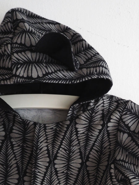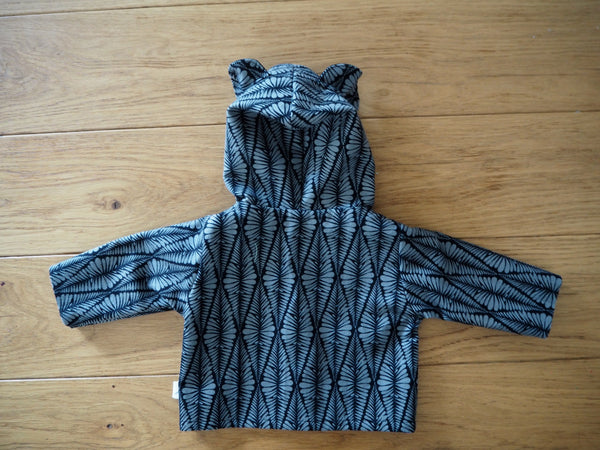 The hoodie is lined with organic jersey and has two bear ears attached.